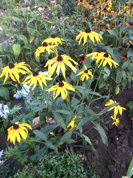 De fapt pozele sunt postate un pic intarziat pentru ca in momentul asta nu mai sunt inflorite decit : galbenelele, nemtisorii, un omag intirziat, o heuchera cu frunze rosii(nu le am denumirile), muscate si alte citeva marunte gen achilea s,a,