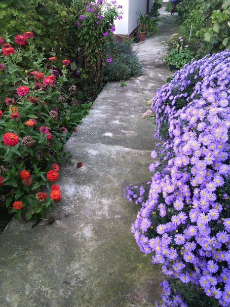 De fapt pozele sunt postate un pic intarziat pentru ca in momentul asta nu mai sunt inflorite decit : galbenelele, nemtisorii, un omag intirziat, o heuchera cu frunze rosii(nu le am denumirile), muscate si alte citeva marunte gen achilea s,a,